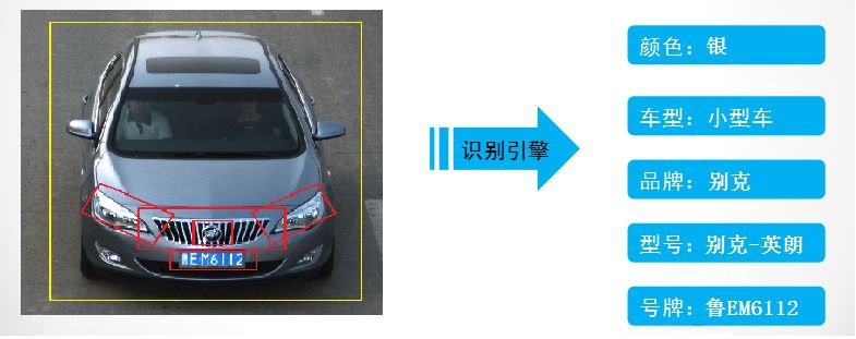 针对车辆本身(不限于车牌)的特征提取、分析和识别的智能系统。它集成多种图像分析、机器视觉领域专利技术的“特征识别引擎”及“人脸检测识别引擎”,能够对视频及图片中的车辆类型、车身颜色、品牌型号、车牌号、遮阳板、年检标、车内摆件、车内挂件等信息的识别,以及对车辆前排驾驶员和乘客进行人脸捕获与人脸比对识别。