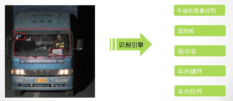 “车辆标志物提取”专门针对车辆前风挡玻璃上的年检标、遮阳板、纸巾盒、车内摆件、车内挂件等标志物进行识别和比对,这些特征标志物一般都具有唯一性及持久性,因而利用这些标志物进行车辆的查找和布控更加具有针对性。
