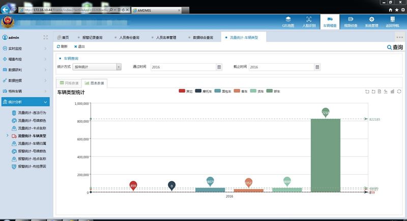 系统可通过车辆类型、车身颜色、车辆品牌型号、车牌号码归属地等信息,根据时间、地点、违法行为等条件对过往车辆进行统计分析,并输出统计报表。